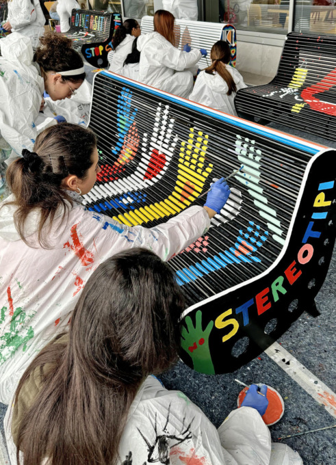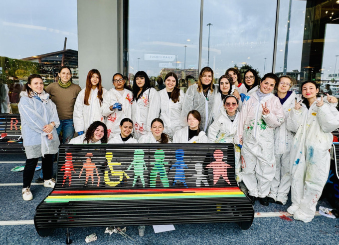 Gli studenti dell’Istituto d’Arte Kandinsky di Milano hanno dato vita nuova alle panchine del centro commerciale Fiordaliso con simboli e messaggio di inclusione.