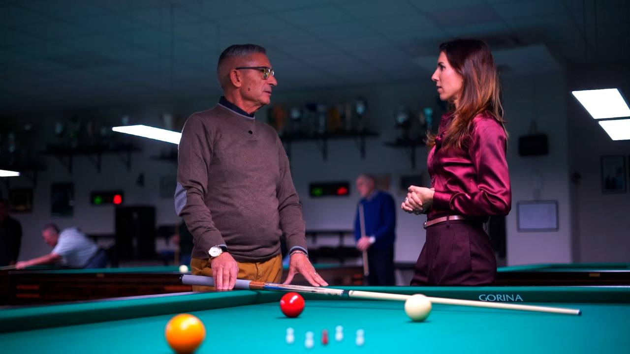 Spazio poi allo sport: la conduttrice si fa spiegare tutti i segreti del tavolo verde del campione del mondo di biliardo Salvatore Mannone e dalla sua squadra a Dimensione Biliardo.