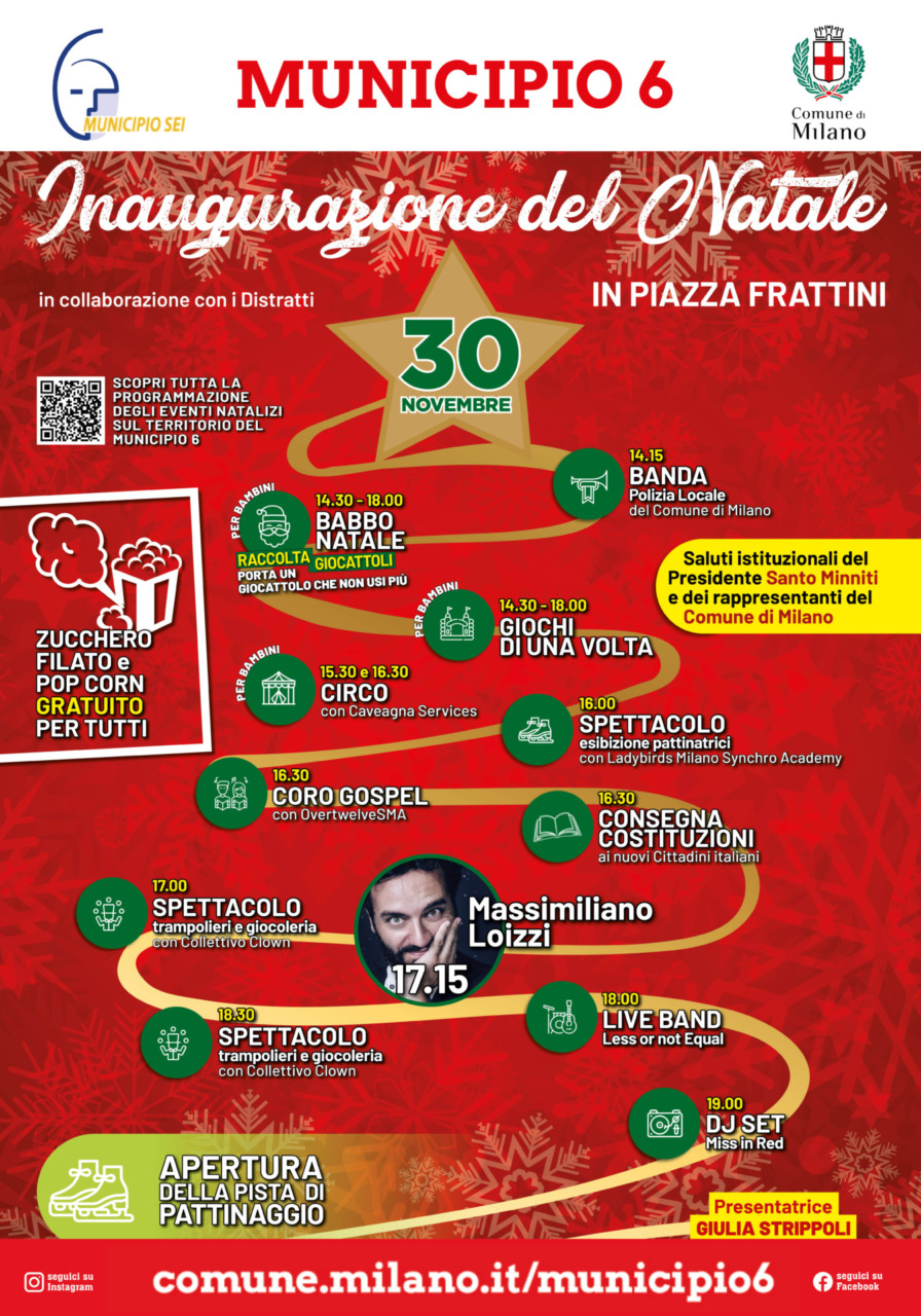 MILANO – Musica, spettacoli, attività per bambini e momenti di condivisione daranno il via alle celebrazioni natalizie del Municipio 6. Domenica 30 novembre, dalle ore 14 fino alla sera, Piazza Frattini si trasformerà in un grande spazio di festa aperto a tutta la cittadinanza. La programmazione e la produzione dell’evento sono state curate da i Distratti Eventi & Servizi, agenzia attiva dal 2012 specializzata nella progettazione e realizzazione di eventi.