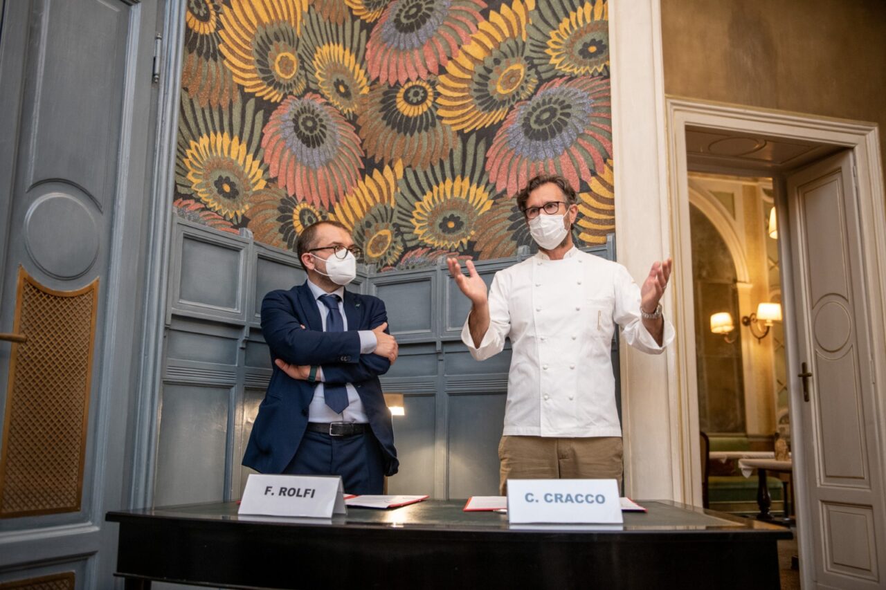 MILANO – Un protocollo d’intesa tra Regione Lombardia e l’Associazione Maestro Martino per la promozione di “Panettone” e “Polenta”, firmato dallo chef Carlo Cracco e dell’assessore all’Agricoltura e all’Alimentazione Fabio Rolfi. Villa Terzaghi, scuola di cucina e ristorante didattico dell’associazione guidata dallo chef, è diventata la sede ufficiale di workshop, seminari, mostre e convegni, laboratori dedicati alla ricerca di ricette innovative e in particolare per l’organizzazione di masterclass con le creazioni dei migliori professionisti e di cuochi e pasticceri emergenti sia per il panettone che per la polenta.