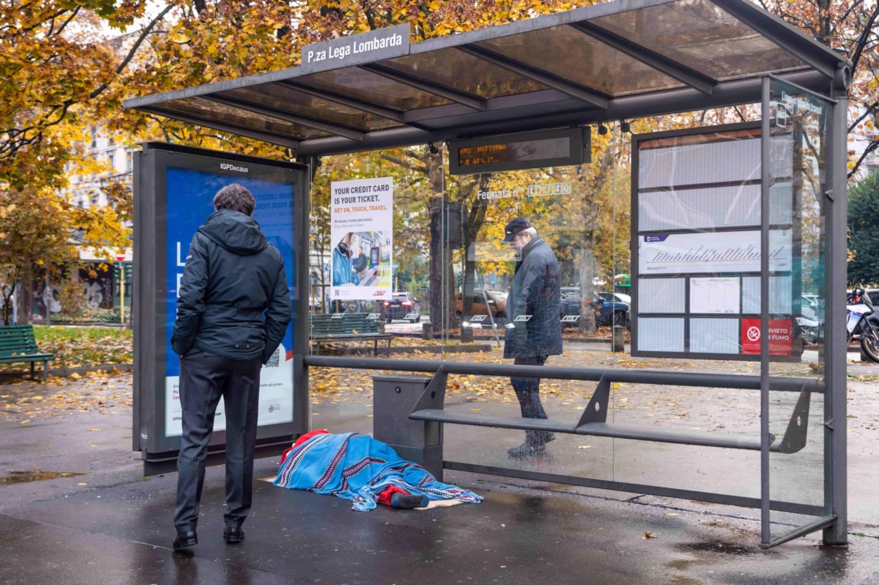 MILANO – A dare forma a questo messaggio è l’artista Andrea Villa, che ha ideato e realizzato l’installazione temporanea in strada di un Babbo Natale senzatetto, sotto la pensilina degli autobus in 4 punti della città: piazza Lega Lombarda, via De Amicis 7, Via Ariosto 4, piazza Cinque Giornate 6.