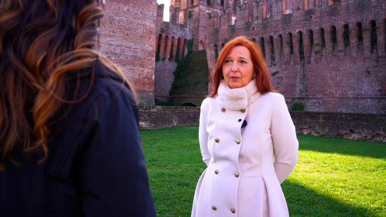 Il nostro viaggio di scoperta di Soncino parte dal palazzo del municipio con l’alta torre civica, simbolo del borgo medievale: costruita nel 1128 come struttura a base quadrata e innalzata a 42 metri nel tardo 1500 con l’aggiunta della cella campanaria, fu in passato anche prigione, oggi visitabile grazie ai lavori di restauro che l’hanno restituita alla cittadinanza. Il frontone della facciata del Palazzo Comunale, ricostruita a seguito del terremoto del 1802, è sormontato dalla torretta con un orologio a percussione, costituito da due piccoli mori che battono con un martelletto su una campanella, testimonianza del periodo di dominazione veneta su Soncino. Si tratta, infatti, di una riproduzione, in scala ridotta del celebre orologio di piazza San Marco. Qui la nostra giornalista incontra il sindaco Gabriele Gallina.