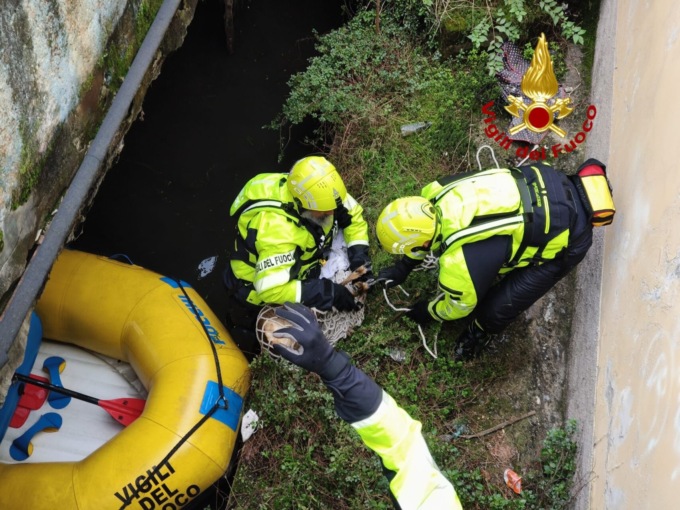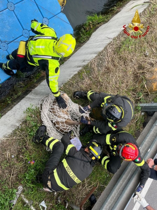 L’intervento di recupero e salvataggio, come spiegano i vigili del fuoco, non è stato semplice: il capriolo era rimasto incastrato in un anfratto, non riuscendo più a liberarsi e rischiando, così, di affogare.