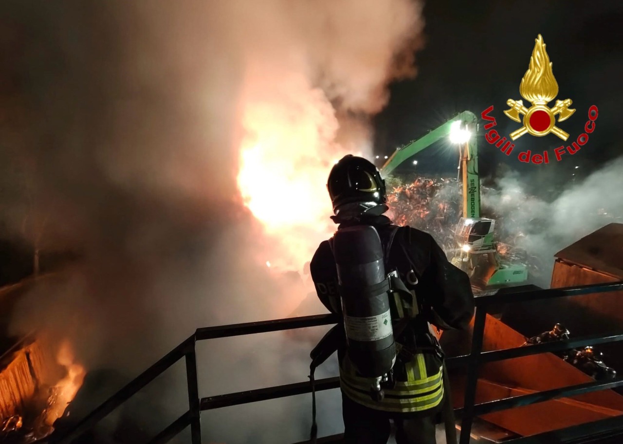 Devastante incendio in un’azienda di smaltimento rifiuti: Vigili del fuoco al lavoro tutta la notte