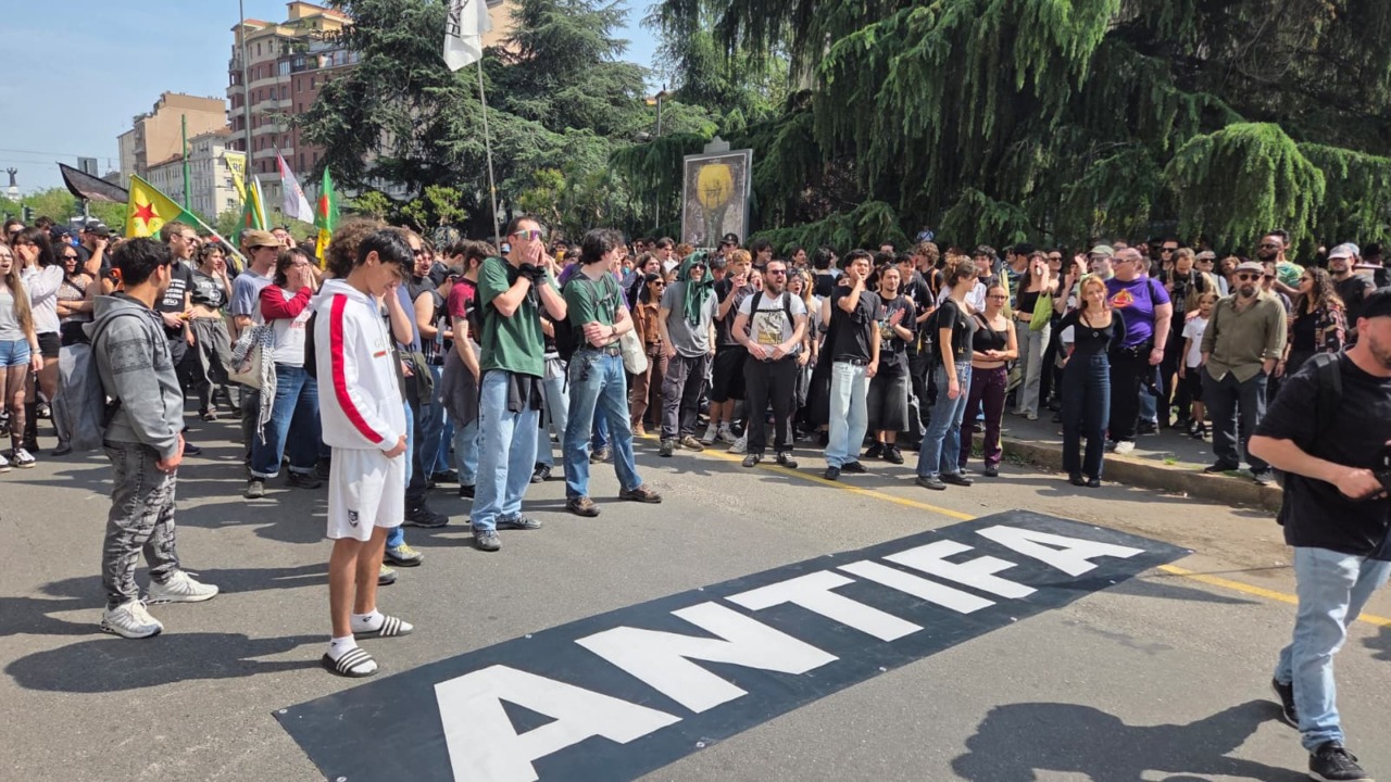 Nel frattempo, a pochi passi, la città raccontava un’altra storia: cortei, tensioni e idranti a segnare una giornata dai toni molto accesi.