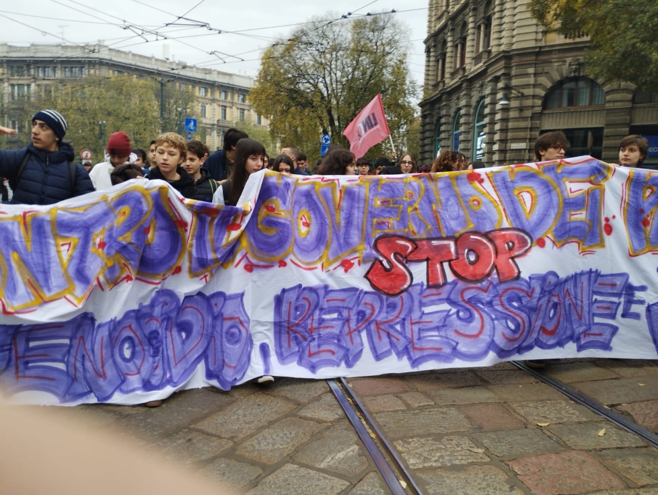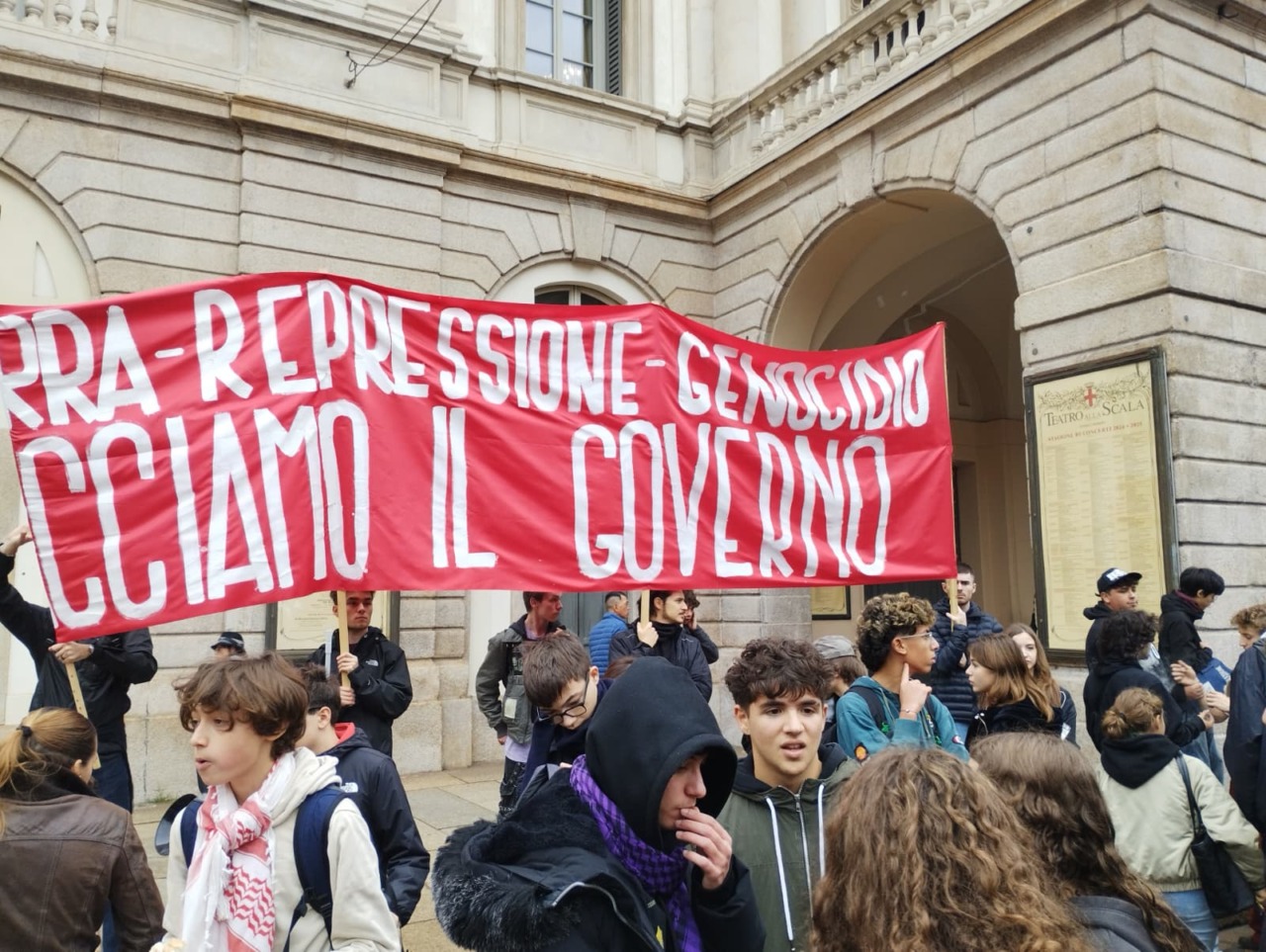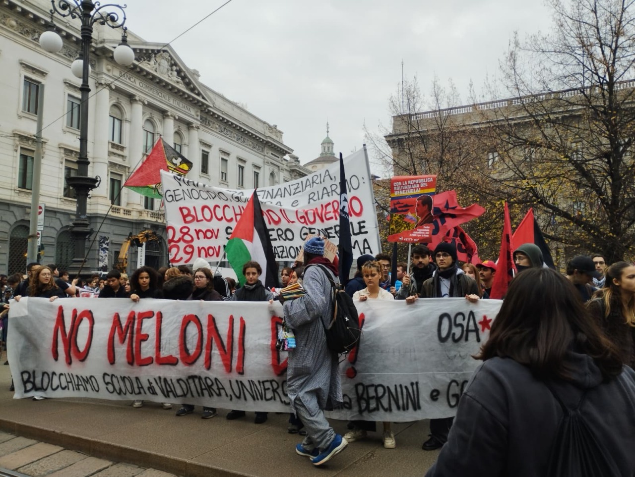 L’ultima tappa si è consumata a mezzogiorno in piazza della Scala, dove gli studenti hanno appeso un grande striscione con la scritta «Palestina libera dal fiume fino al mare». Al centro della piazza è comparso anche un manifesto con la scritta «No Meloni Day. Blocchiamo scuola di Valditara, università della Bernini e governo» e il richiamo alle prossime mobilitazioni: sciopero generale del 28 novembre e manifestazione nazionale a Roma il 29.