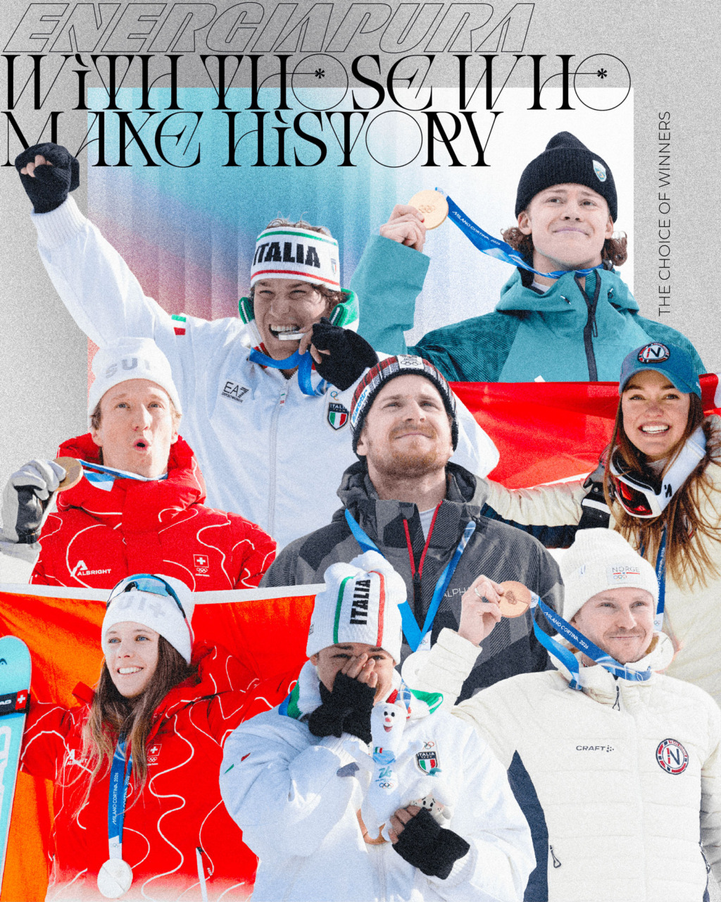In occasione dei Giochi Olimpici Invernali di Milano Cortina 2026, diversi atleti che collaborano con Energiapura hanno ottenuto risultati di rilievo nelle rispettive discipline, confermando la presenza del brand ai vertici dello sci alpino e dello snowboard di alto livello.